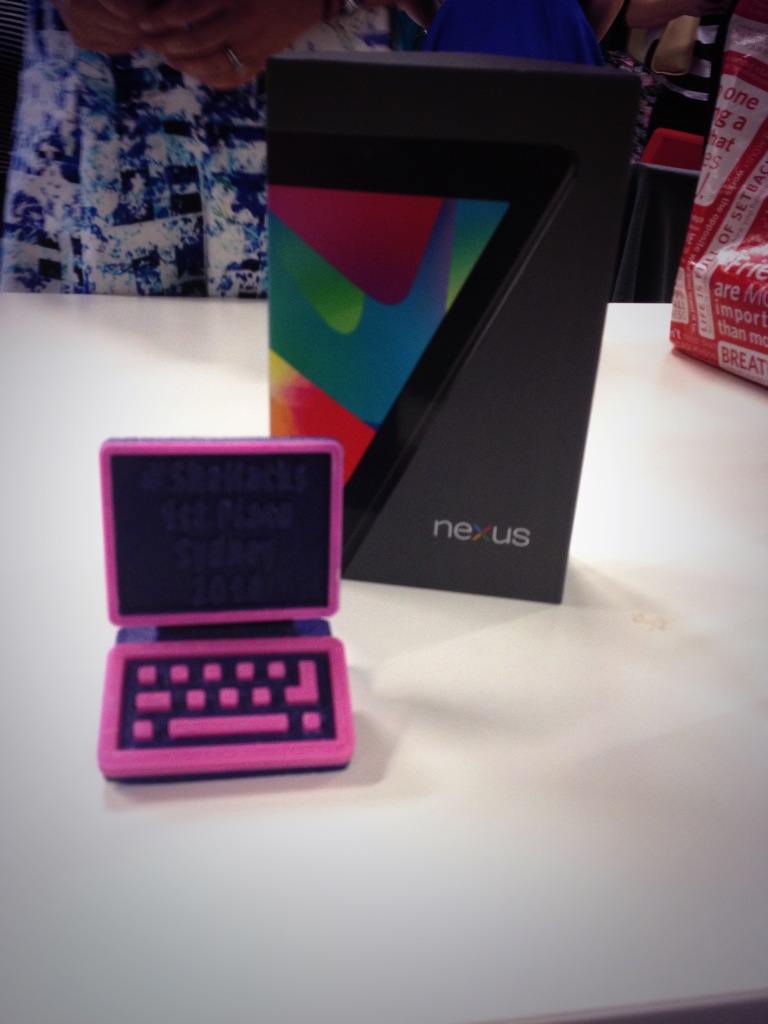 Our prize was a Nexus 7 tablet and a 3D printed trophy, which was a pink computer.